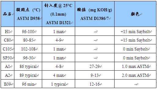 Sasolwax费托蜡技术指标参数
