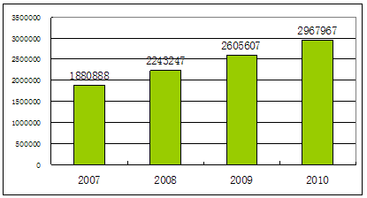 2007-2010年日用玻璃制品及玻璃包装容器制造业工业总产值预测 单位:千元