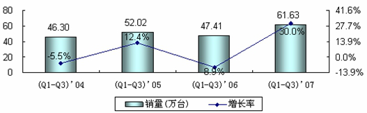 2004-2007年前三季度中国票据打印机市场销量与增长
