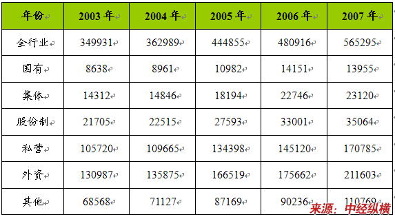 一、2003-2007年中国电线电缆制造 行业 企业从业人员 分析