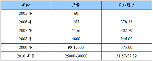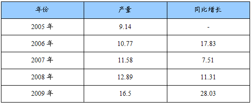 2005-2009年我国多晶硅产量增长情况