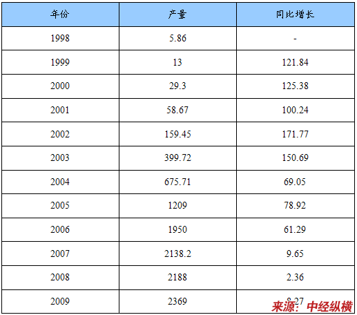 1998-2009年我国电动自行车产量及增长情况