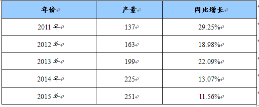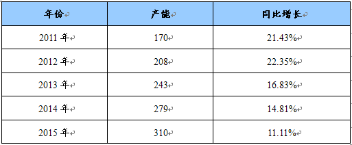 2011-2015年中国废旧电线电缆产能预测 单位:万吨