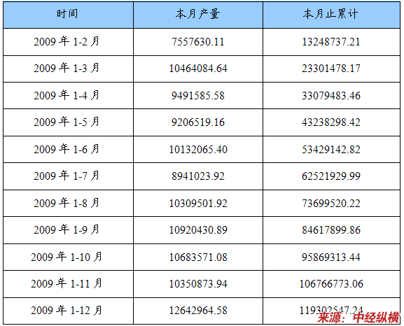 2009年1-11月锂离子电池产量同比增长0.23%,从6月起已出现了5个月增长。