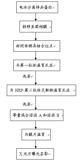 超敏化学发光试剂原理:辣根过氧化酶使试剂中的发光物(Luminol)氧化并发光,而试剂中含有增强剂这使得发光增强了1000倍。在免疫印迹中,将复杂的蛋白混合物经SDS-PAGE分离,并转移到固相膜上(如NC、PVDF)等,用于免疫学检测,经HRP标记的抗体与膜上的蛋白直接(标记一抗)或间接(标记二抗)反应。当加入免疫印迹化学发光试剂后,Luminol发生氧化降解,并发射波长为428nm的光,此光可经X光胶片(放射自显影片)感光记录下来。