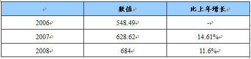 2008年,全国产钢50048.80万吨,同比增长1.13%;生产生铁35988.57万吨,同比增长-0.16%;生产连铸坯48371.61万吨,同比增长1.25%;生产钢材58177.30万吨,同比增长3.56%;生产焦炭82401.11万吨,同比增长20.74%;生产铁矿石82401.11万吨,同比增长20.74%;生产铁合金1824.99万吨,同比增长3.90%。增长速度表明,2008年,全国钢、铁、材、矿的产量持续增长,但增长速度明显减缓。