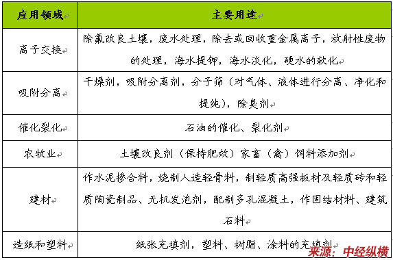沸石的主要用途