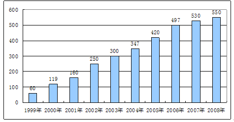 到2000年我国淀粉糖产量达到了119万吨,2001年达到了160万吨,2002年达到了250万吨,2003年达到了300万吨,2004年已经达到了347万吨,2005年达到了420万吨,2006年淀粉糖产量497万吨。淀粉糖从1999年的60万吨发展到2006年的497万吨,增长了八倍之多。2007年淀粉糖产量530万吨。目前我国淀粉糖的生产品种主要还是以麦芽糖浆、高麦芽糖浆和葡萄糖为主,这类品种占淀粉糖比重的80%以上。