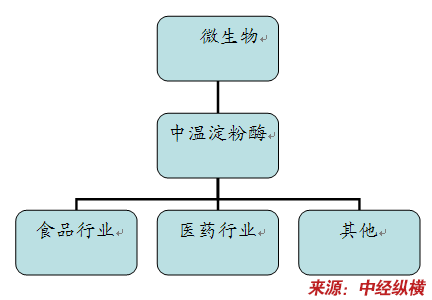 我国中温淀粉酶 行业 的上游 行业 为微生物杆菌,下游 行业 比较广泛,包括食品 行业 、医药和纺织等 行业 。