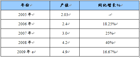 2005-2009年食品制造业工业总产值增长情况统计表 单位:万亿元