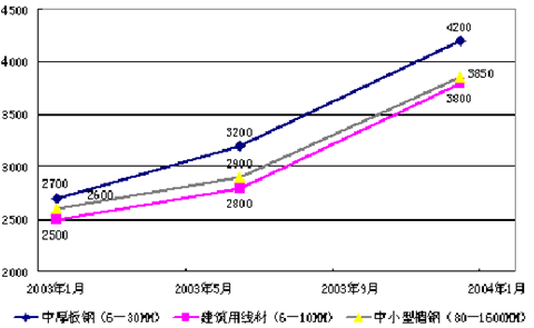 作为产业下游的发电设备生产企业而言,钢材等原材料占生产成本比重为50%以上。2003年,国内钢材等原材料价格大幅上扬对发电设备制造企业的生产成本控制带来较大压力。从发电设备各生产企业2003年的经营情况来看,在供不应求的情况下,发电设备的销售价格虽有提高,但钢材涨价而引起的负面影响比较明显,导致全年产品毛利润率较2002年都出现了1至2个百分点。