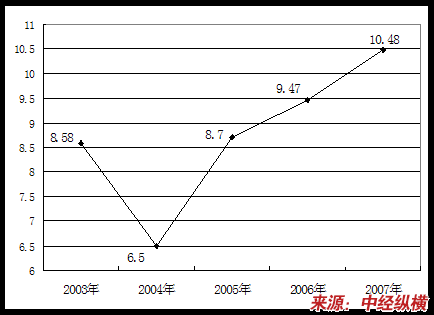 第三节 03-07年中国发电机及发电机组制造业产成品资金占用率 分析