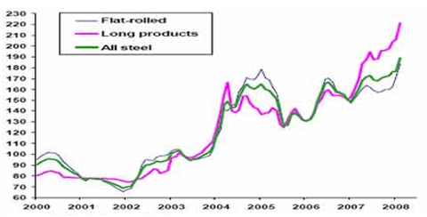 2000——2008年全球钢材价格指数