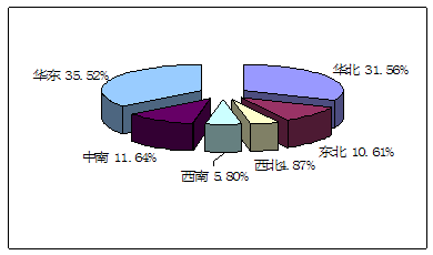 2008年钢材产量区域分布图