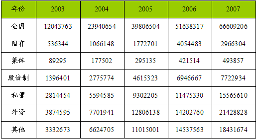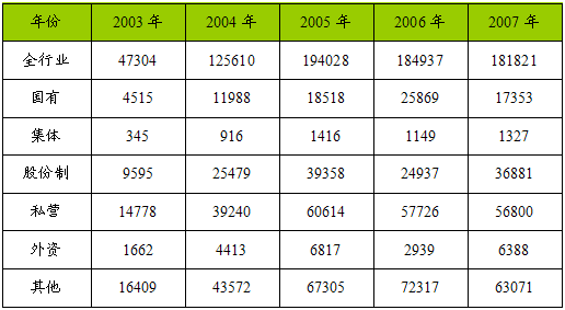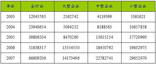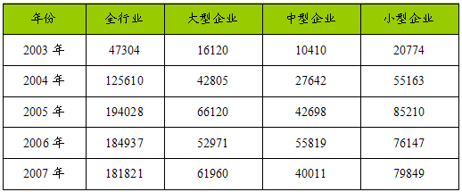 一、2003-2007年 行业 总销售收入 分析