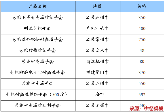 与普通防护手套相比,芳纶手套价格高出数十倍。芳纶手套价格较早主要是由于产品的稀缺性及原材料价格昂贵造成的。