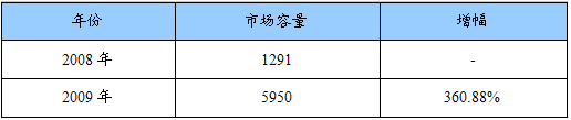 2008-2009年我国光伏、风电发电储能电池市场容量测算表