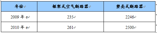 2009-2010年我国低压电器主要产品需求量测算表 单位:万台