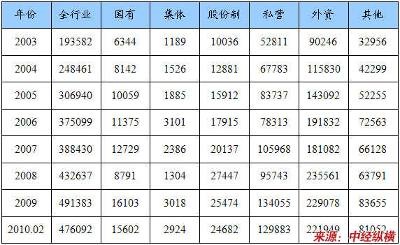 第四节 2003-2010年2月 行业 从业人员数量状况
