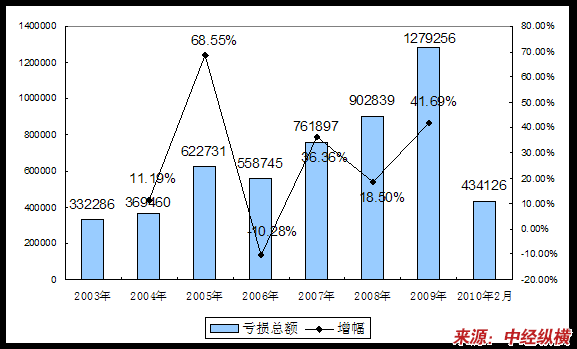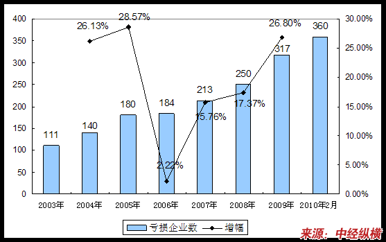 第二节 2003-2010年2月 行业 亏损企业数量状况