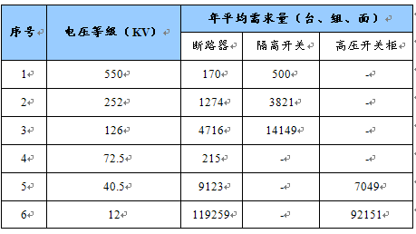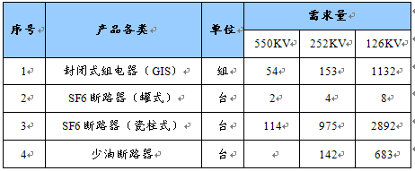 “十五”期间110KV以上断路器中各品种年平均需求量统计表