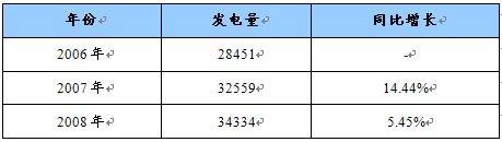 2006-2008年我国发电量及同比增长统计表 单位:亿千瓦时