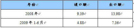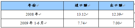 2008—2009年6月变压器、互感器进出口统计 单位:亿美元