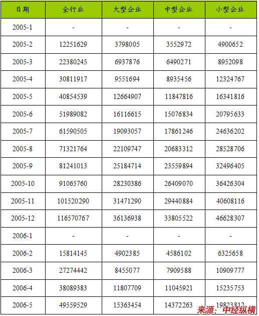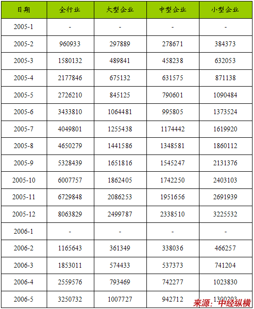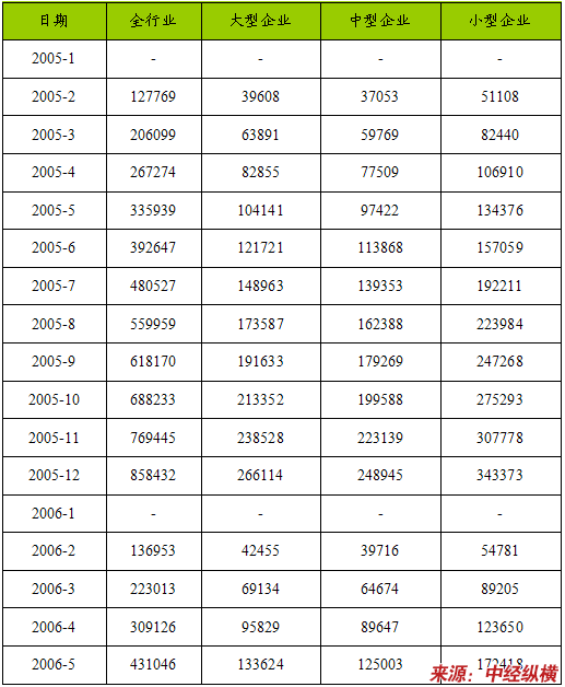 2005-2006年电机制造 行业 不同规模企业财务费用
