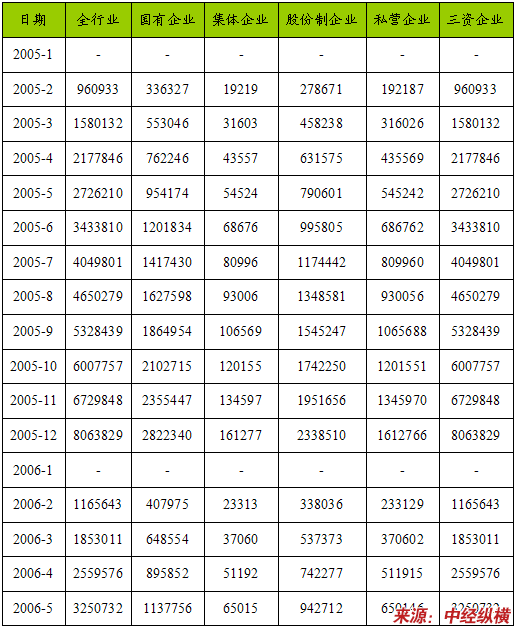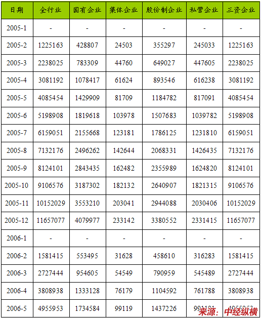 2005-2006年电机制造 行业 不同所有制企业管理费用