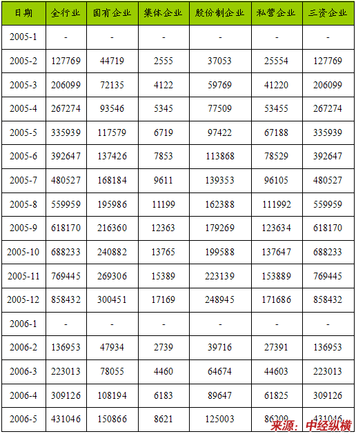 2005-2006年电机制造 行业 不同所有制企业财务费用