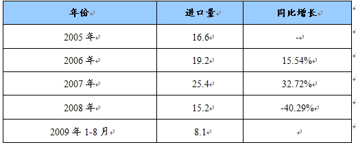 2005-2009年8月我国大型锻件进口量值统计 单位:万吨