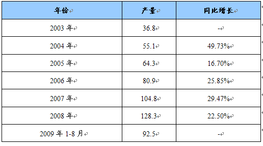2003-2009年8月我国大型锻件产量及增长统计 单位:万吨