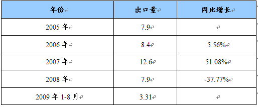 2005-2009年8月我国大型锻件出口量值统计 单位:万吨