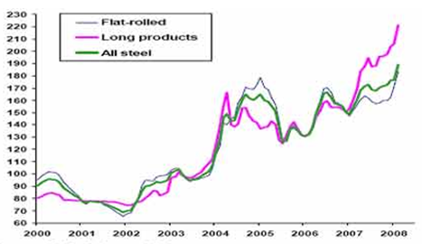 2000——2008年全球钢材价格指数