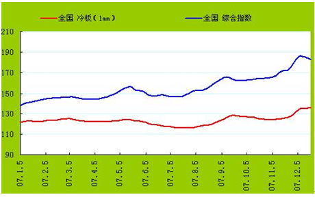 2007年国内钢材价格指数走势