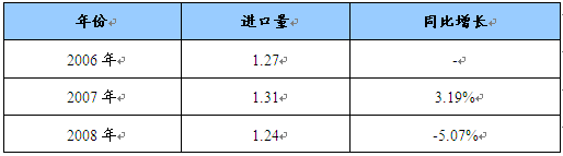 2006-2008年我国卫生级丁苯橡胶进口量统计