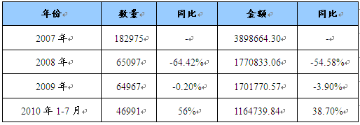 继中国电信大举扩张FTTX版图外,中国联通和中国移动今年也加大了FTTx的部署速度,三大主要运营商的集体上场让中国FTTH市场成为2009年全球关注的焦点,也带动了下游光器件、光模块和光纤线缆的增求增长,这让很多分光器企业将市场部分重点转向国内业务;同时北美和欧洲的市场由于金融危机的影响,市场饱和度有所减缓,因此2008-2009年我国分光器出口量持续减少。