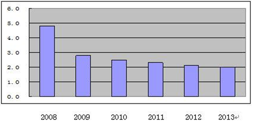 2008-2013年PLC-Splitter通道品均价格 分析 及预测