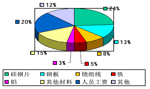 因电机品种繁多,功率有大有小,使用环境各异,因此电机材料的构成结构(种类和数量)变化较大。一般而言,普通型电机总成本中材料平均约占60集装箱制造业~70%。