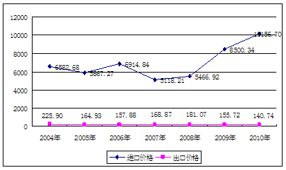 2004—2010年,我国二氧化碳的进口价格有着明显的上涨态势,而出口价格保持相对稳定,预计未来几年我国二氧化碳需求增长较生产快,产销正在逐渐平衡,预计未来几年国内二氧化碳市场价格还会在需求的刺激下出现较快的增长,给二氧化碳生产企业带来良好的发展机会。