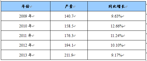 2009-2013年我国大型锻件生产规模预测表 单位:万吨