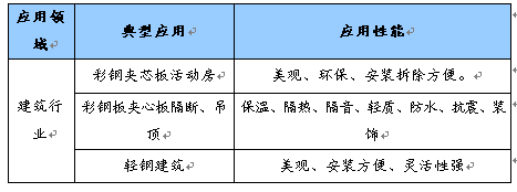 不同的芯材与不同板型组合的夹芯板,可分别适用于不同的建筑需要,包括工业厂房、公共建筑、组合房屋、净化工程等多个建筑领域。