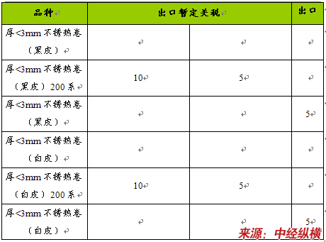 1、钢铁产品出口暂定关税调整