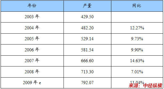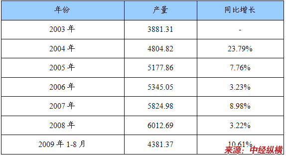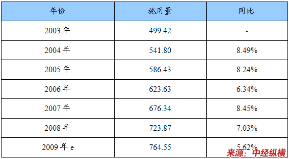 2003-2009年我国农用氮、磷、钾化肥产量及其增长统计