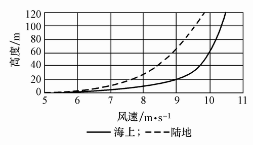 陆地、海上风速剖面图比较