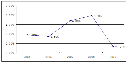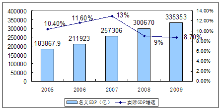 2008年以来,我国经济形势先扬后抑,国家宏观调控政策相应由“双防”转变为“保增长”。2009年,国际金融危机尚未见底,为应对外部冲击、保持我国经济平稳增长,预计政府会加快转变增长方式步伐,在积极的财政政策和适度宽松的货币政策的背景下,加快改革步伐,以扩大内需为主导,充分发挥投资和外贸的推动作用。