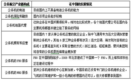 2008年中国公务航空产业链发展情况