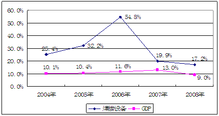 从图中可以看出,焊接设备 行业 产量增幅与与国家宏观经济环境相关程度较大,随着GDP的增加,产量增加, 行业 产品总产量增长率高于国家GDP增长率, 行业 前景看好。