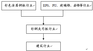 彩钢夹芯板上游的彩色涂层钢板、EPS产品的供应情况会影响彩钢夹芯板产品的生产成本,彩色涂层钢板、EPS的价格上涨,彩钢夹芯板公司应通过适当调整产品售价,加大研发力度,降低产品成本等措施用以减轻成本上升的压力。而下游 行业 影响着彩钢夹芯板的市场需求量,若下游 行业 发展迅速则会刺激市场对彩钢夹芯板产品的需求。