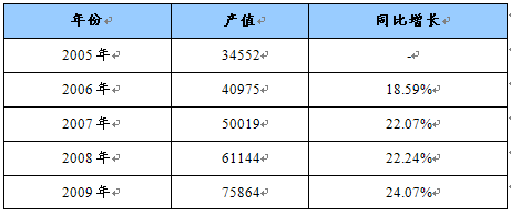 2005-2009年我国建筑业产值增长情况统计表 单位:亿元